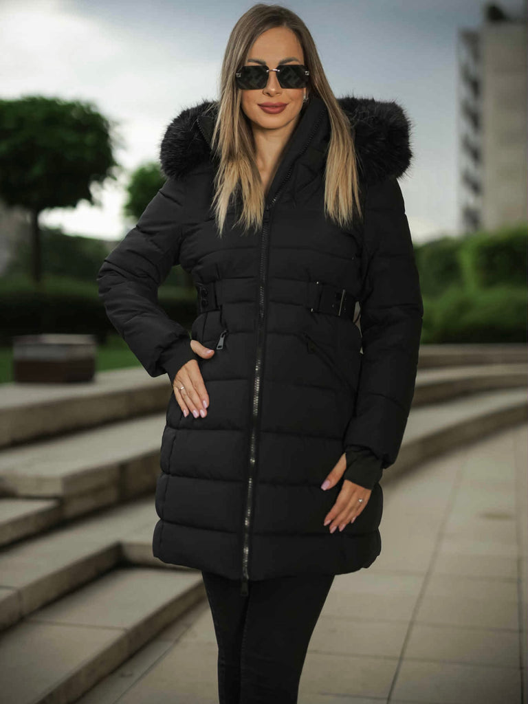 Meleg pufi csinos télikabát levehető fekete kapucniprémmel