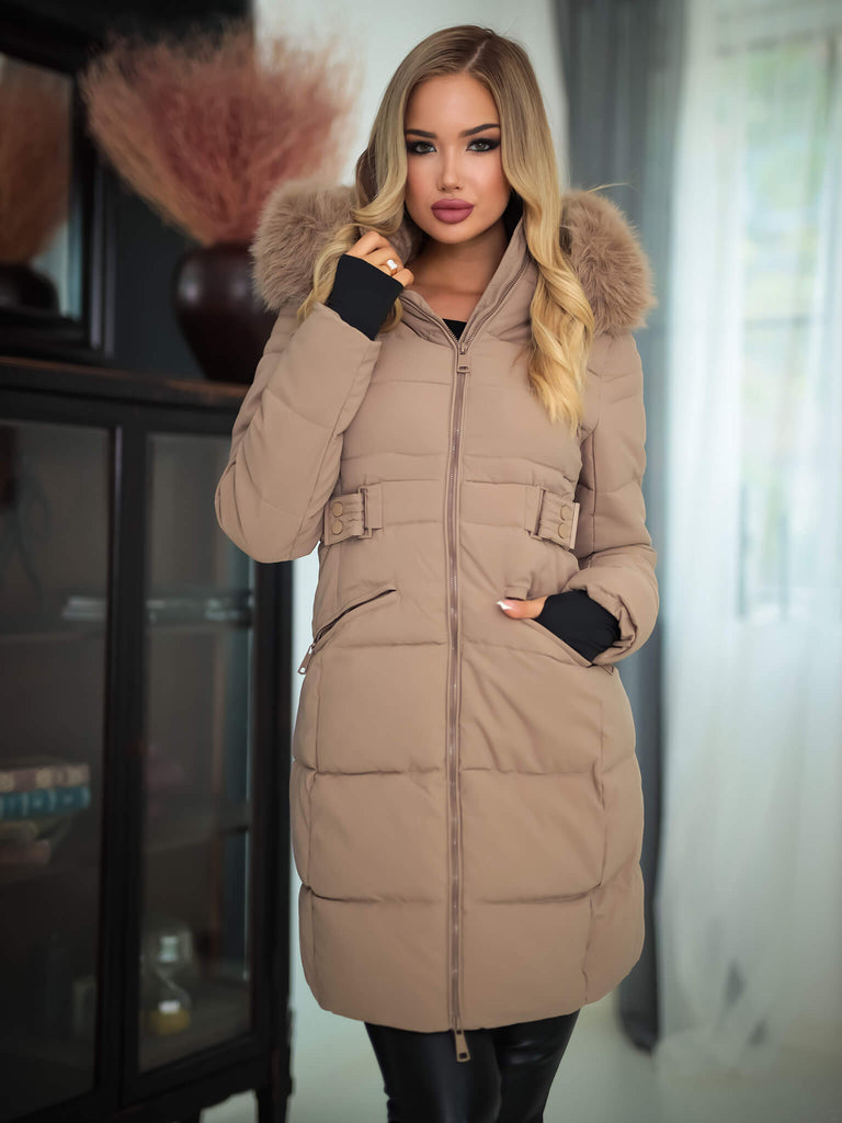 Patenttal szűkíthető, karcsúsított tejeskávészín női télikabát DX8861C