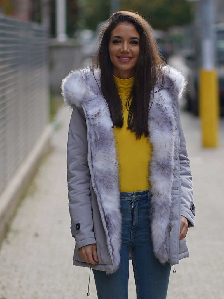 PRÉMIUM Fagyos szürke óriás kapucnis meleg női parka kabát